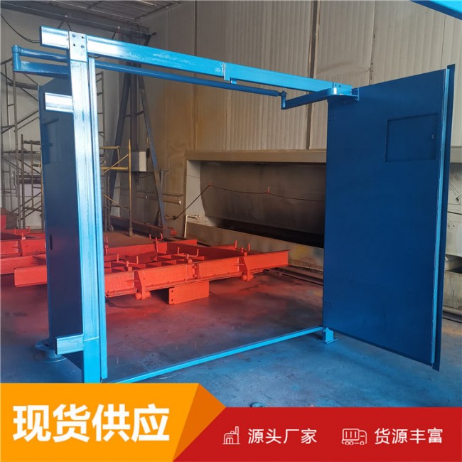 3、門框采用鋼制型材焊接而成;門扇采用鋼制型材做骨架,與鋼質板材折做而成的楊公祭盒體組焊而成;門扇與聯桿連接調節配重,使得風門能可靠關閉。