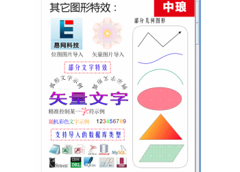 中瑯條碼標簽批量打印可變數據支持弧形文字、變形文字(拉伸、壓縮)、反轉文字、鏡像文字、可變文字、隨機顏色文字、底紋填充文字,漸變色文字、空心文字、各類不規(guī)則文字(大小漸變、位置跳躍等)。