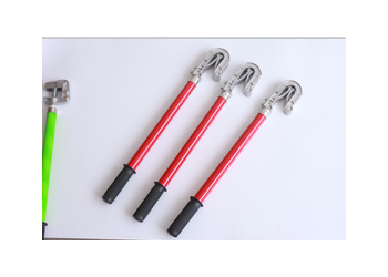 (3)110KV高壓接地線 標稱截面:35mm2 總根數:1136 平均直徑(mm):0.2mm 計算截面:(mm2):35.67 絕緣桿部分長度:1360 mm 握手部分長度:700 mm 金屬接頭部分長度:140 mm 節數:2 桿徑:30mm 總長(不包括線夾):2200 mm