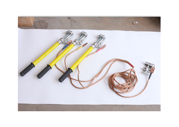 (3)110KV高壓接地線 標稱截面:35mm2 總根數:1136 平均直徑(mm):0.2mm 計算截面:(mm2):35.67 絕緣桿部分長度:1360 mm 握手部分長度:700 mm 金屬接頭部分長度:140 mm 節數:2 桿徑:30mm 總長(不包括線夾):2200 mm