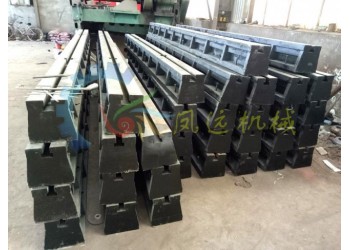 2、 鑄鐵地軌的的安裝: 使用條形橋板,合像水平儀。先調平一根地軌,然后以其為基準,依次往下進行初調。然后水泥灌漿,待水泥漿凝固后,進行精調檢驗。