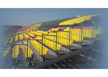 · 看臺選用優質鋼材或鋁材,材料全部可回收利用,真正的環保看臺,綠色建筑
