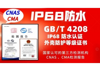 北京儀綜所實驗室是具備CNAS和CMA資質的第三方檢測機構,是國家認可的省部級以上的檢測機構,按照GB/T4208-2017和IEC60529標準進行IP68防水認證,出具檢測報告。