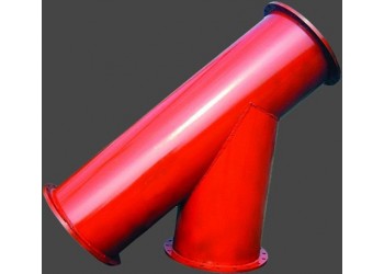 分岐式防爆器,分歧式防爆器結構由主干連接管和分歧管組成,分歧管端部用防爆橡膠板封堵。正常工作狀態下,瓦斯按照Y-FBQ型防爆器上的箭頭標識方向抽送;瓦斯爆炸,管路發生異常時,在壓力的作用下,分歧管路上的防爆橡膠板破開,釋放瓦斯抽放管路中的壓力,以便保護其它瓦斯抽放管路。