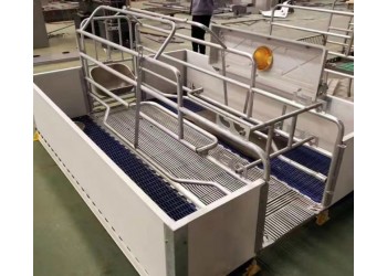 母豬產床,主體采用熱浸鋅管或噴漆管焊接,使其結構 合理,經濟實惠,質量和壽命大幅提高,成為各大規模化養豬廠的 ,仔豬塑料地板,母豬球墨鑄鐵地板,扁鋼大梁支撐。含母豬食槽,仔豬圓形補料槽,保溫箱,電熱板。