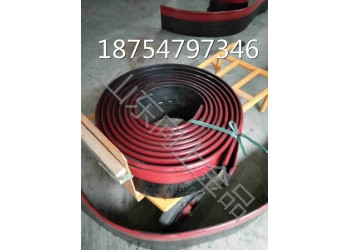 2.采用橡膠(NR)添加半凝固潤滑劑的方式,解決了以往防溢裙邊高耐磨的同時,容易損傷皮帶的難題。該材質質地柔韌,彈性優良,避免了聚氨酯(PU)不耐水的缺點,高耐磨的同時不損傷輸送帶。